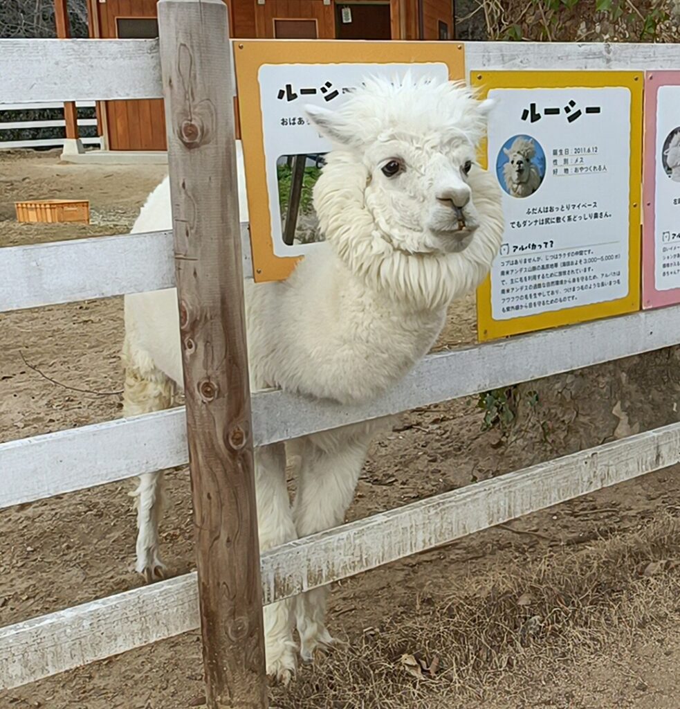 うさぎ・やぎ・ひつじ・アルパカにえさやりをしましたが、特にアルパカは実物を見るのが初めてだったようで、「かわいい!」と喜び、親としても印象に残っています。